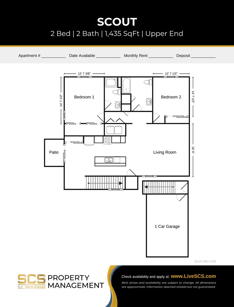 SCS Eau Claire ofrece apartamentos de 2 Dormitorios desde $1,465 con 927–1,571 pies cuadrados. Aquí está el precio actual y la disponibilidad: