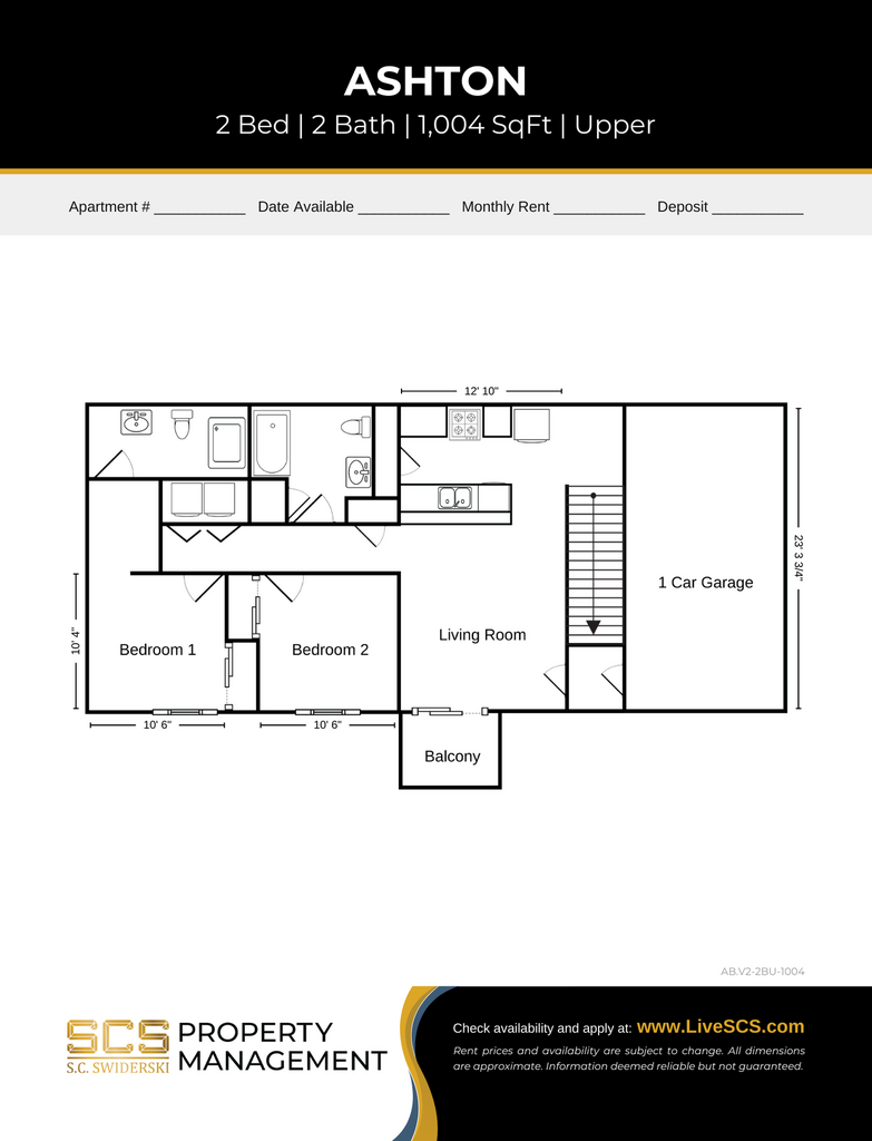 3 Dormitorios, 2 Baños, 1165 pies²Detalles de Diponibilidad