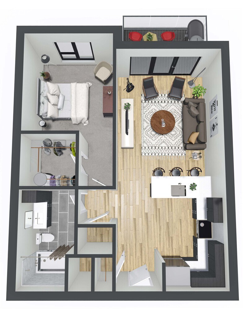 1 Dormitorio, 1 Baño, 792 pies²Disponible AhoraGalería del Modelo