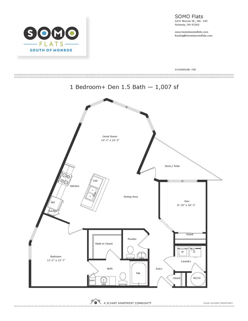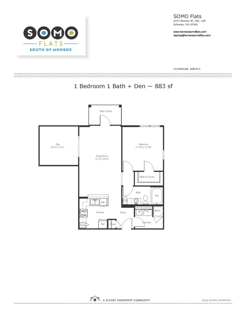 Birch 4 1.1 + Den (U3C) - Plano 1 Unidad de apartamento: 1-337Modelo de apartamento: Birch 4 1.1 + Den (U3C)1 Dormitorio, 1 Baño, 883 sq ftDisponible AhoraCottonwood 1.1 (U11)