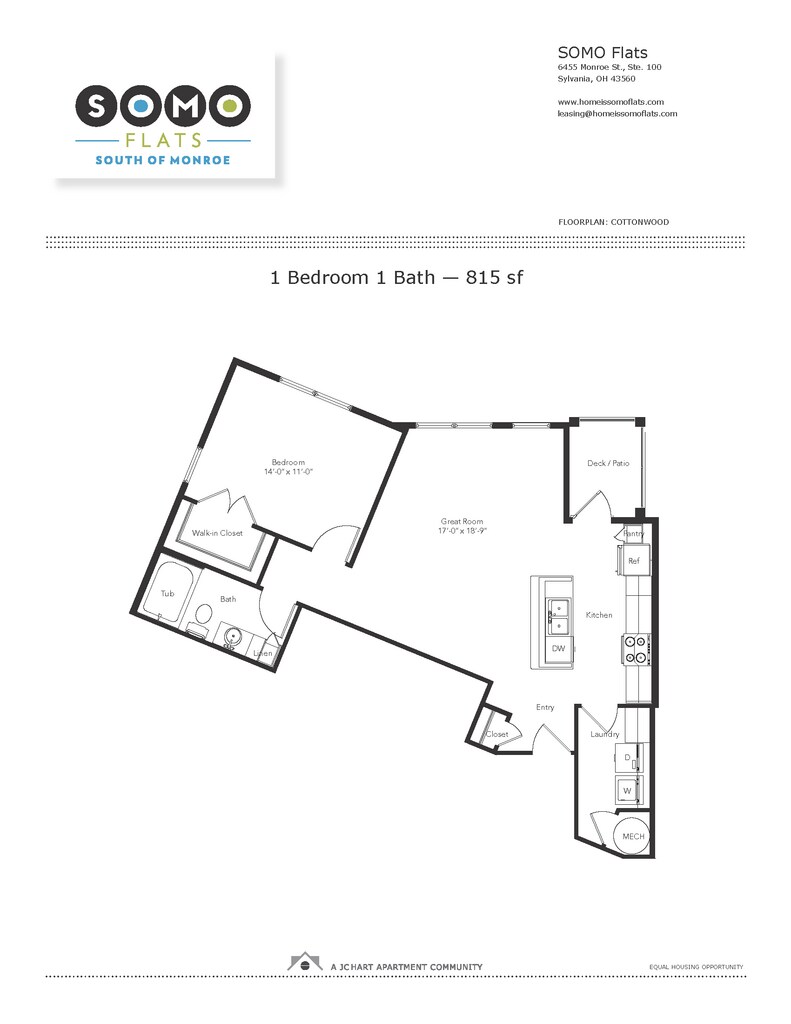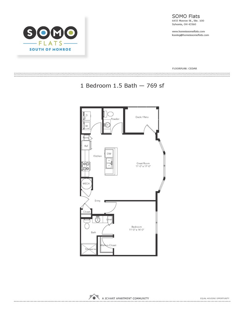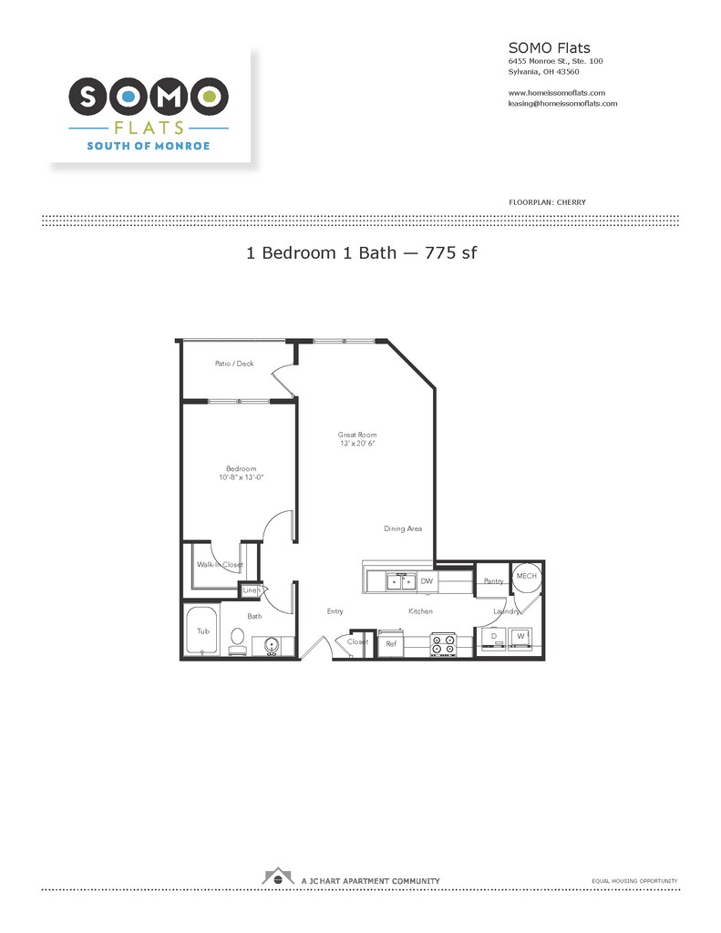 Modelo de apartamento: Cherry 1.1 (U2)1 Dormitorio, 1 Baño, 775 sq ftDisponible Ahora![]()