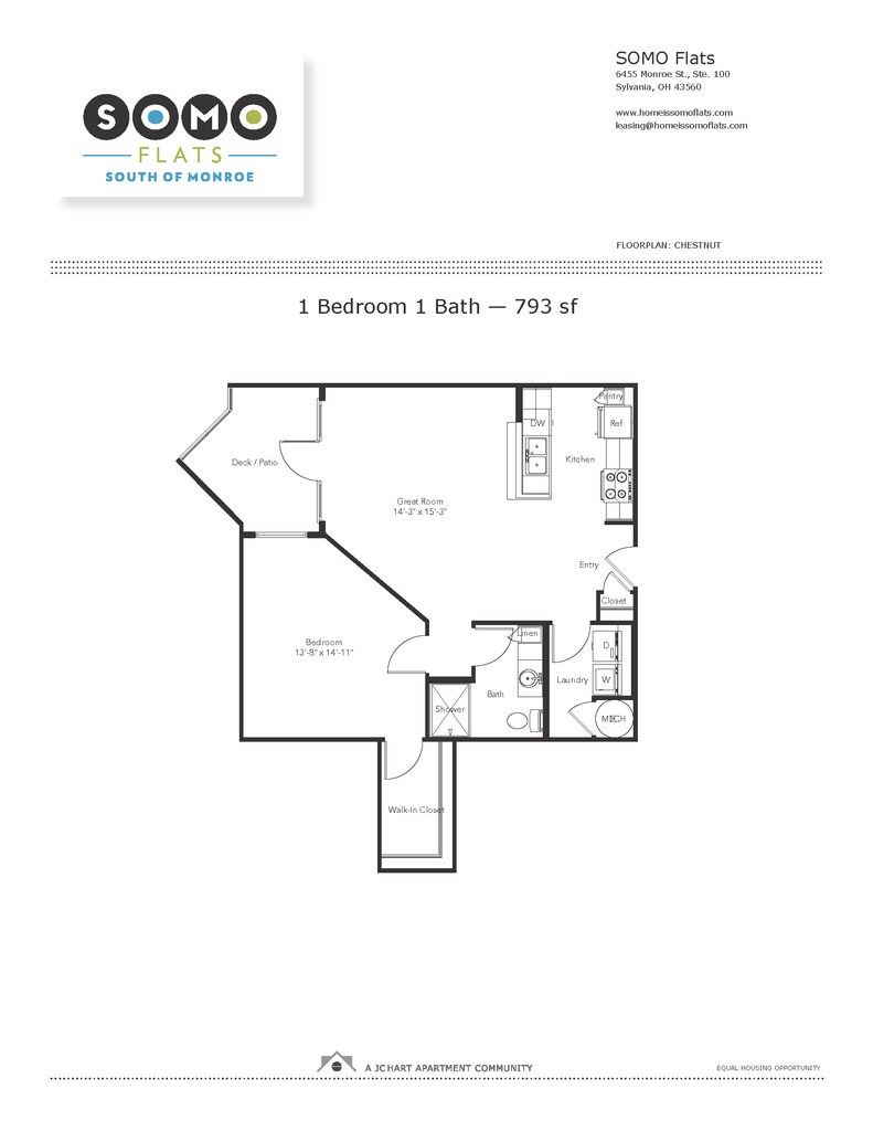Modelo de apartamento: Chestnut 1.1 (U5)1 Dormitorio, 1 Baño, 793 sq ftDisponible November 25, 2025![]()