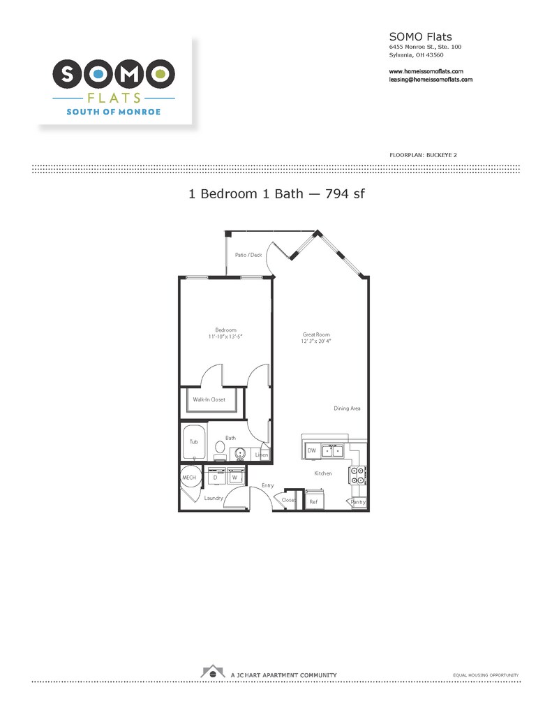 Modelo de apartamento: Buckeye 2 1.1 (U3A)1 Dormitorio, 1 Baño, 794 sq ftDisponible January 3, 2026![]()