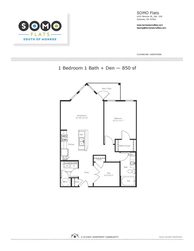 Fecha Disponibilidad Unidad Pies² No Disponible Hawthorn 1.1 + Den (D1) 850 pies² Modelo de apartamento: Hawthorn 1.1 + Den (D1)1 Dormitorio, 1 Baño, 850 sq ftNo Disponible![]()