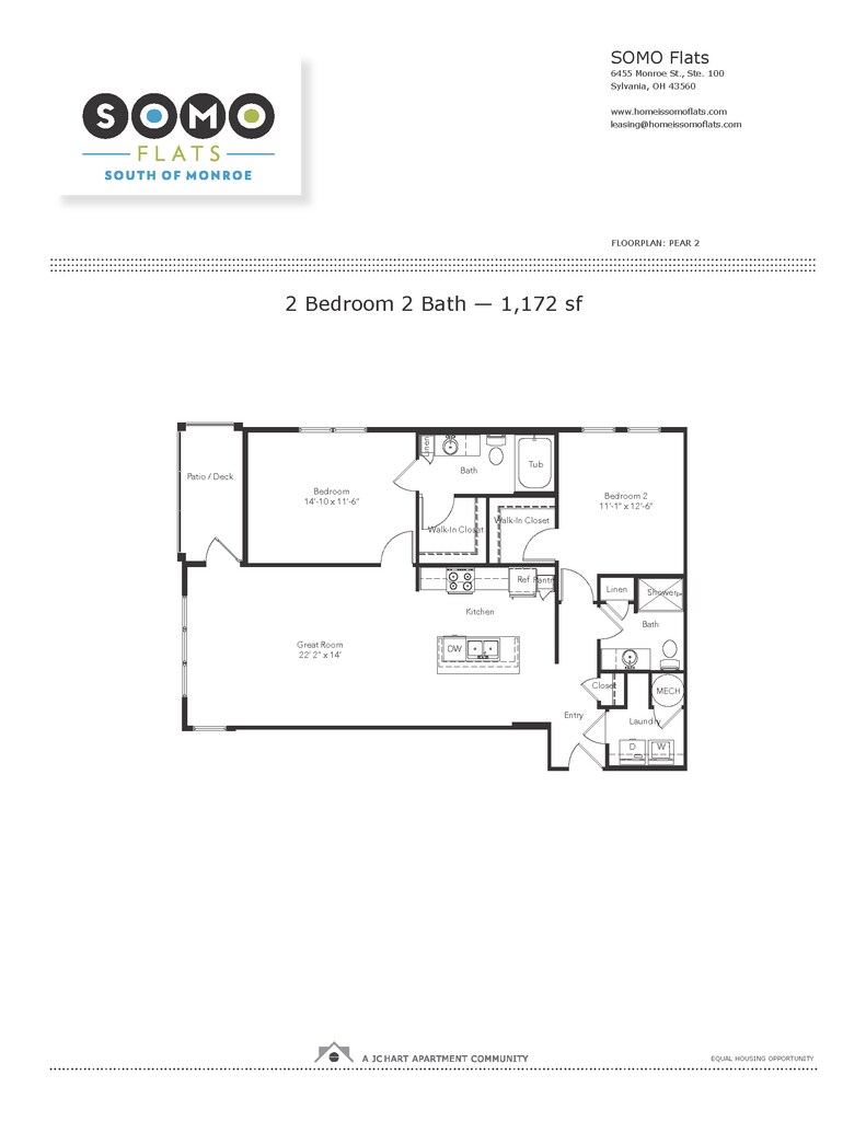 SOMO Flats es de J.C. Hart primer Company Apartment Community en Sylvania, OH. Inauguración en abril de 2021 para mudanzas, J.C. Hart equipo de administración está actualmente se admiten reservas. La propiedad cuenta con 206 apartamentos, una casa club, piscina y estacionamiento subterráneo. Los apartamentos será una combinación de apartamentos de 1, 2 y 3 habitaciones con acabados excelente y características. En asociación con empresa local, República de Desarrollo, J.C. Hart te espera con ansias para hacer que nuestras el registro de lo que proporciona un estilo de vida de primer nivel y excepcionales de atención al cliente a la comunidad de Sylvania. IN