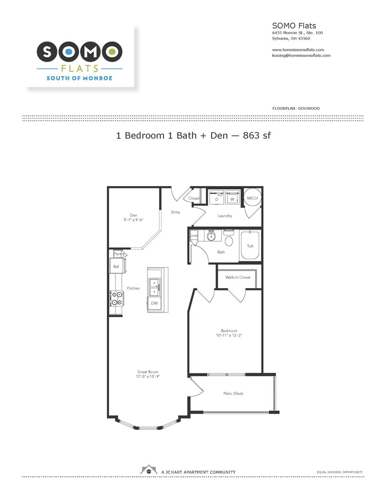 Fecha Disponibilidad Unidad Pies² No Disponible Dogwood 1.1 + Den (U9) 863 pies² Modelo de apartamento: Dogwood 1.1 + Den (U9)1 Dormitorio, 1 Baño, 863 sq ftNo Disponible![]()