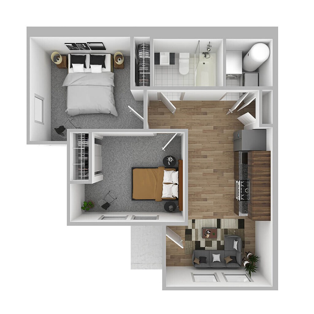2 Dormitorios, 1 Baño, 755 pies²Disponible AhoraEl más grandeEsta opción tiene las unidades más grandes para este modeloDetalles de Diponibilidad