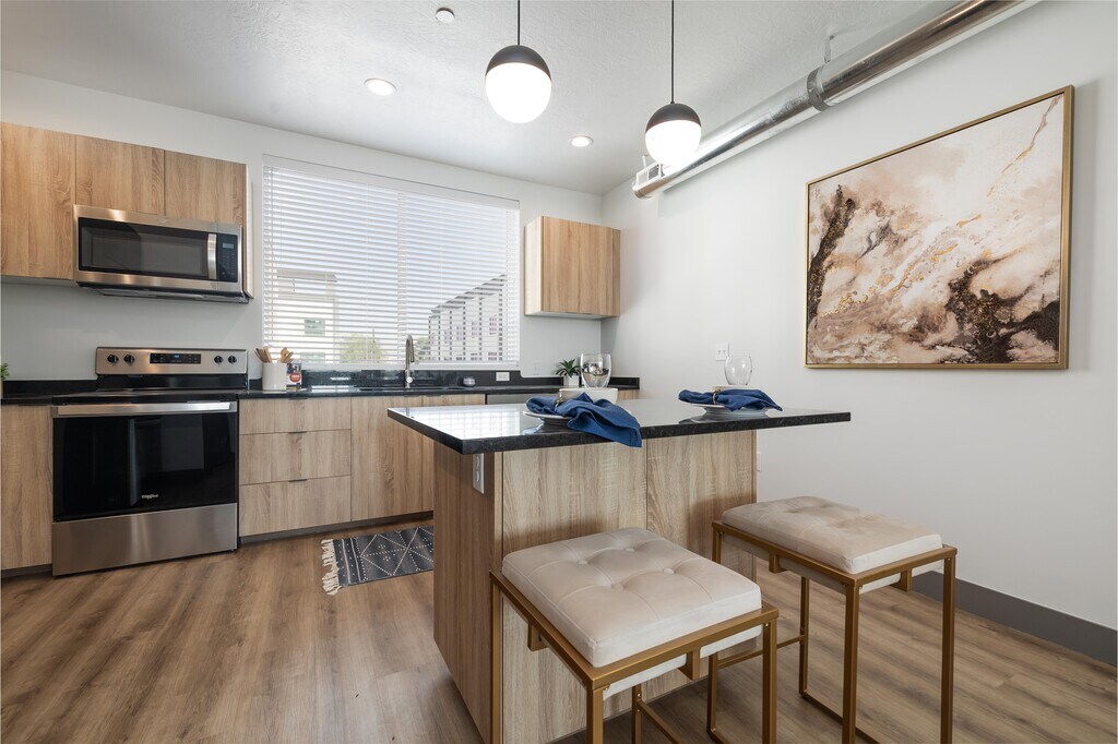Ven a casa a SUR17 Townhomes. Apartamentos completamente nuevos que incluyen opciones como una terraza en la azotea, SmartHome completo con llave de Amazon y patios privados. La ubicación de 385 W 1700 S en el vecindario de la autopista People's Freeway de Salt Lake City está perfectamente ubicada para el trabajo o la diversión. Deja que nuestro equipo de arrendamiento te muestre todo lo que este complejo tiene para ti. Selecciona tu apartamento de 2 habitaciones y luego ven a hacer un recorrido por el complejo. Experimenta un nuevo estándar en SUR17 Townhomes.