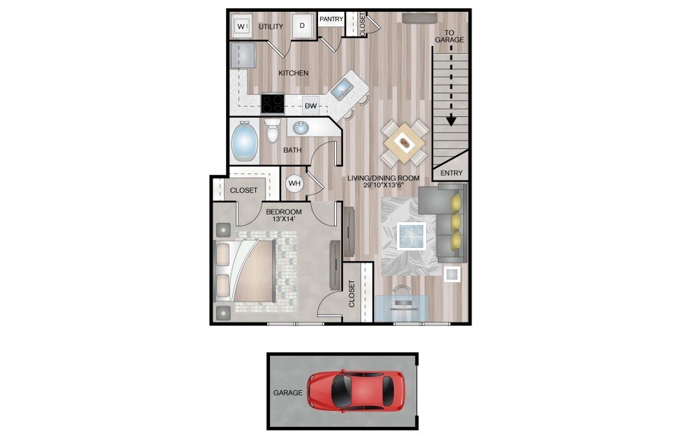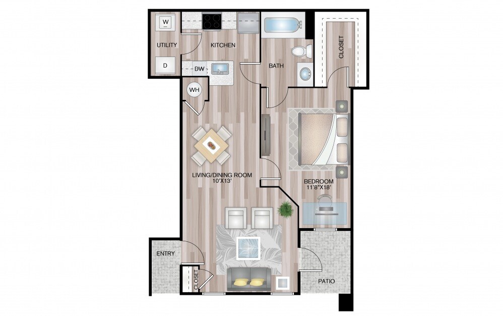 Modelo de apartamento: ElmLlame para Precios1 Dormitorio, 1 Baño, 970 sq ftNo Disponible![]()