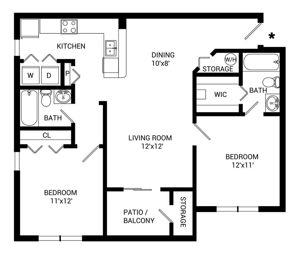 The Beechnut - Plano 1 Los planos son representaciones artísticas. Todas las dimensiones son aproximadas. El producto y las especificaciones reales pueden variar en tamaño o detalle. No todas las características están disponibles en cada vivienda en alquiler. Por favor, consulta con un representante para obtener más detalles.