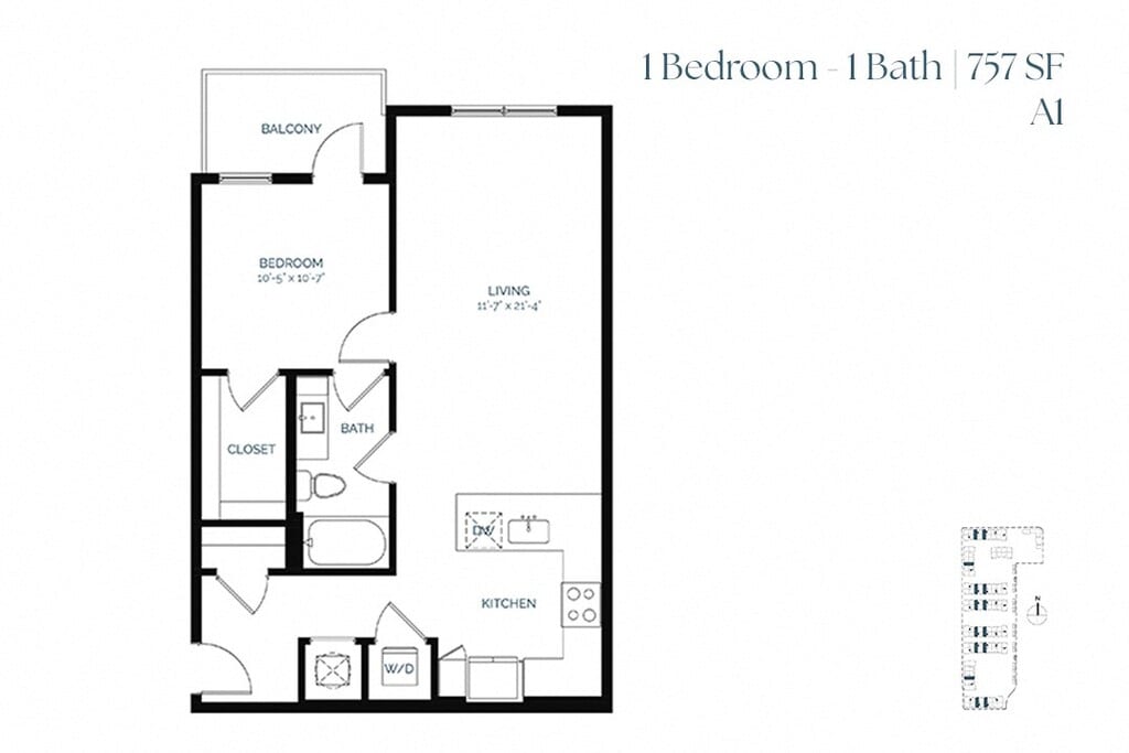 1 Dormitorio, 1 Baño, 738-757 pies²Disponible AhoraGalería del Modelo