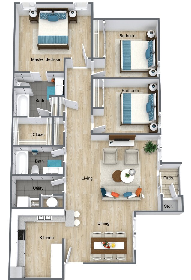 2 Dormitorios, 2 Baños, 1157 pies²El más grandeEsta opción tiene las unidades más grandes para este modeloGalería del Modelo