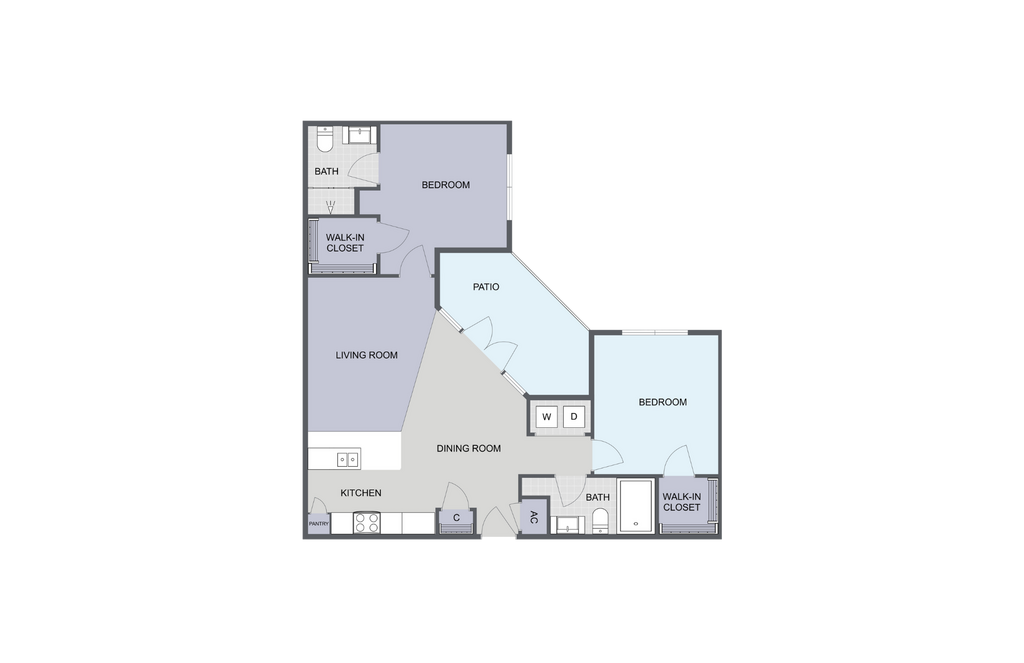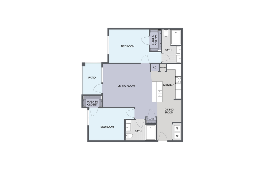 Modelo de apartamento: B3Desde $1,2842 Dormitorios, 2 Baños, 1073 sq ftDisponible Ahora![]()