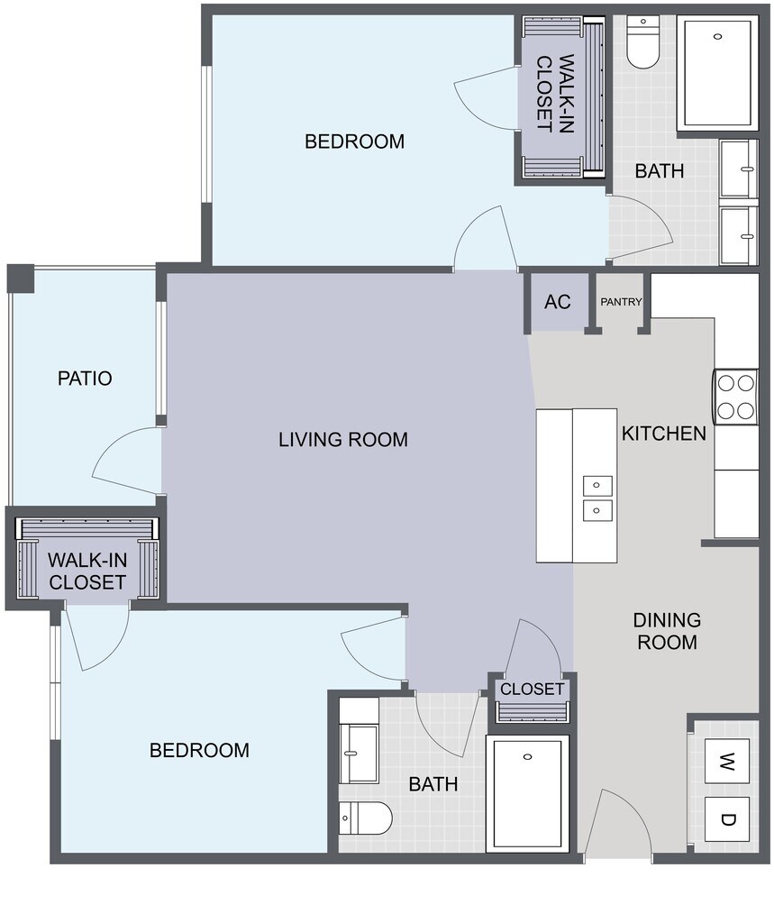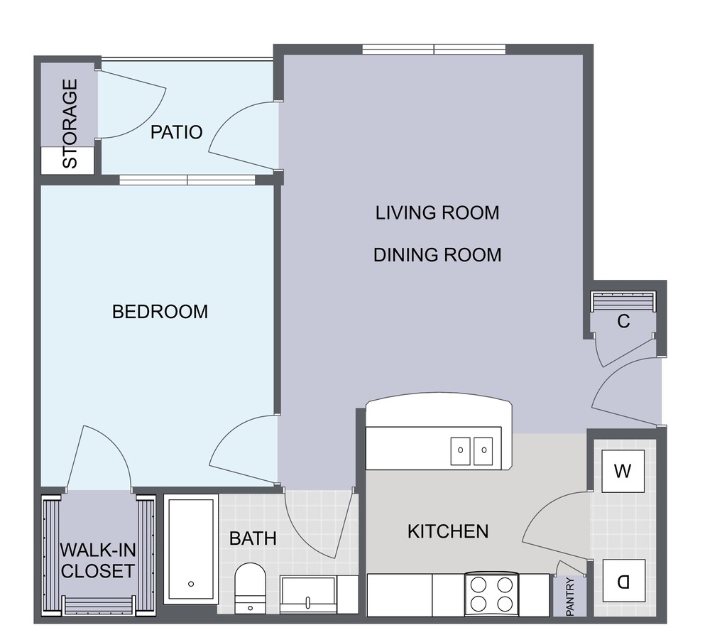 1 Dormitorio, 1 Baño, 754 pies²Disponible AhoraGalería del Modelo