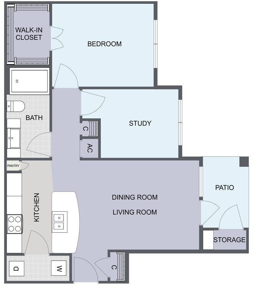 Modelo de apartamento: A1Desde $1,0761 Dormitorio, 1 Baño, 674 sq ftDisponible Ahora![]()