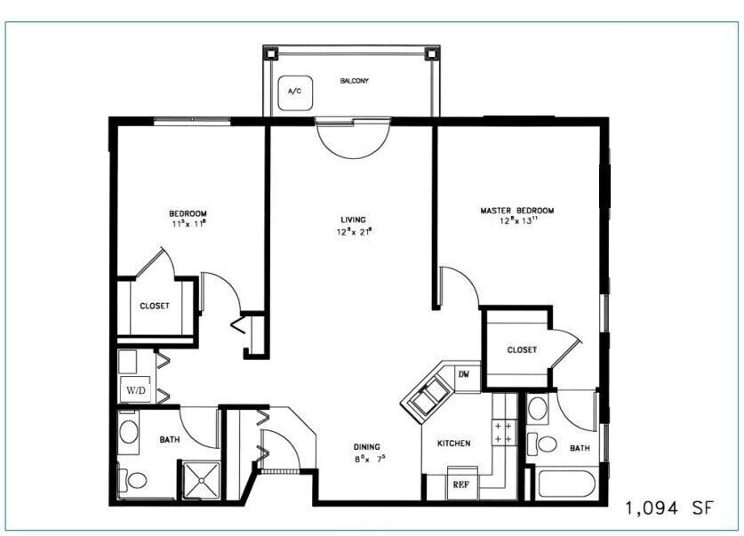 Modelo de apartamento: 2A2 Dormitorios, 2 Baños, 1094 sq ftDisponible Ahora![]()