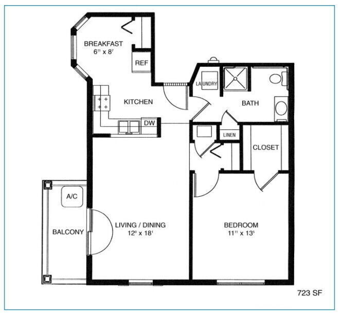 Modelo de apartamento: 1B1 Dormitorio, 1 Baño, 723 sq ftNo Disponible![]()