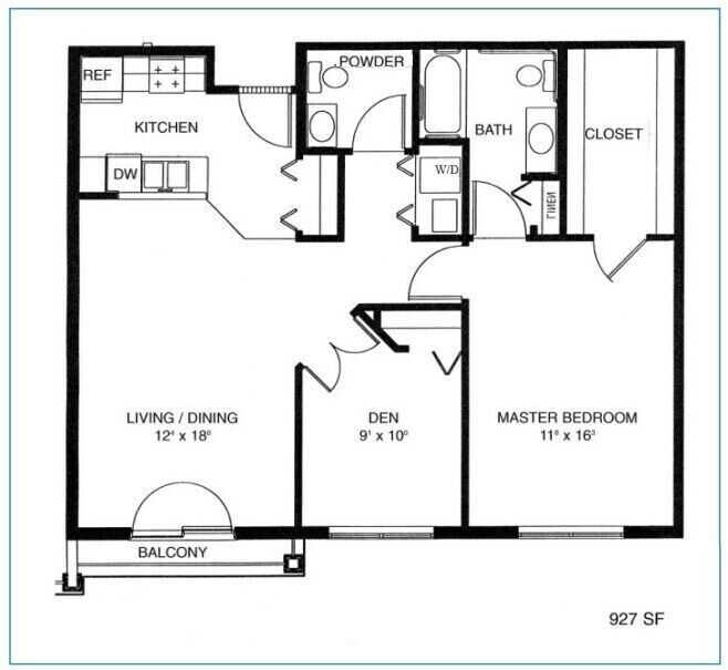1 Dormitorio, 1.5 Baños, 927 pies²Galería del Modelo