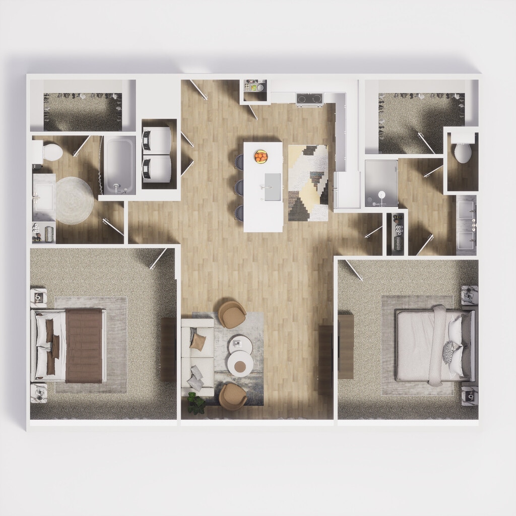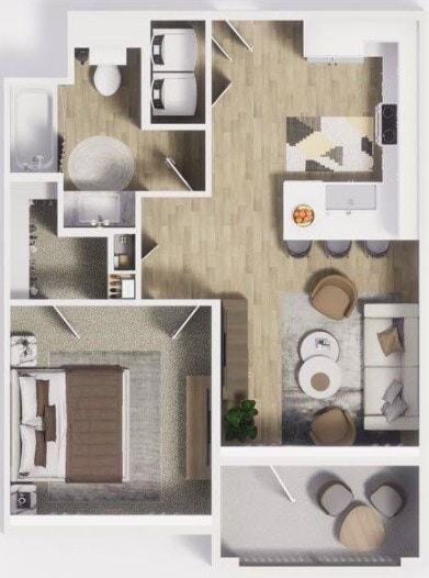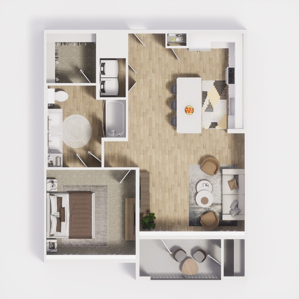 Modelo de apartamento: A7Desde $1,6001 Dormitorio, 1 Baño, 1014 sq ftDisponible May 16, 2026![]()