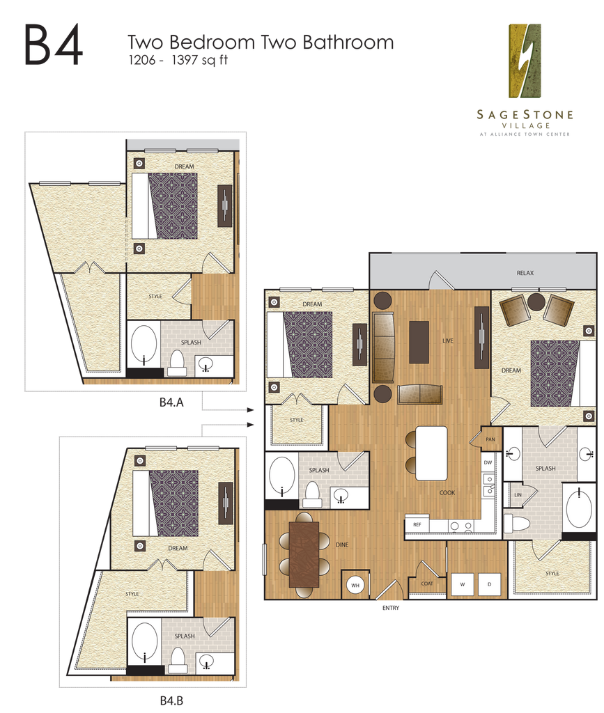 Modelo de apartamento: A3 1 BR / 1 BADesde $1,4751 Dormitorio, 1 Baño, 819 sq ftDisponible Ahora![]()