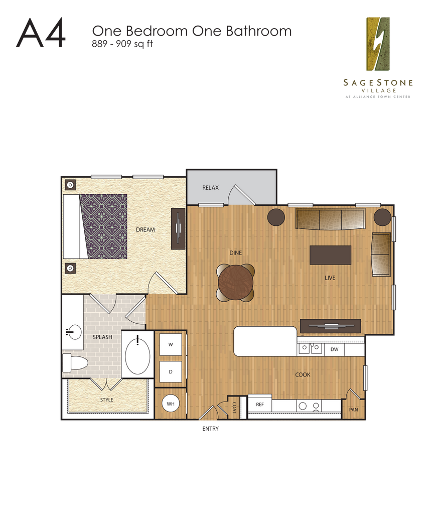 1 Dormitorio, 1 Baño, 909 pies²Disponible AhoraGalería del Modelo