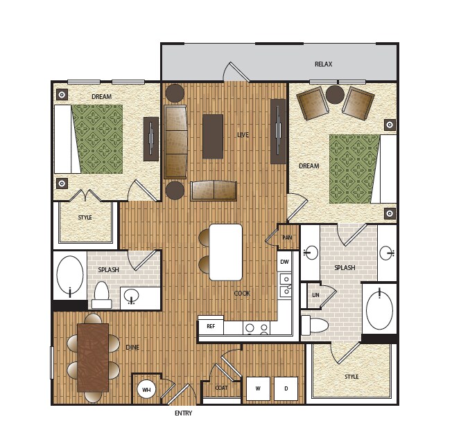 Modelo de apartamento: A4 1 BR / 1 BADesde $1,5251 Dormitorio, 1 Baño, 909 sq ftDisponible Ahora![]()
