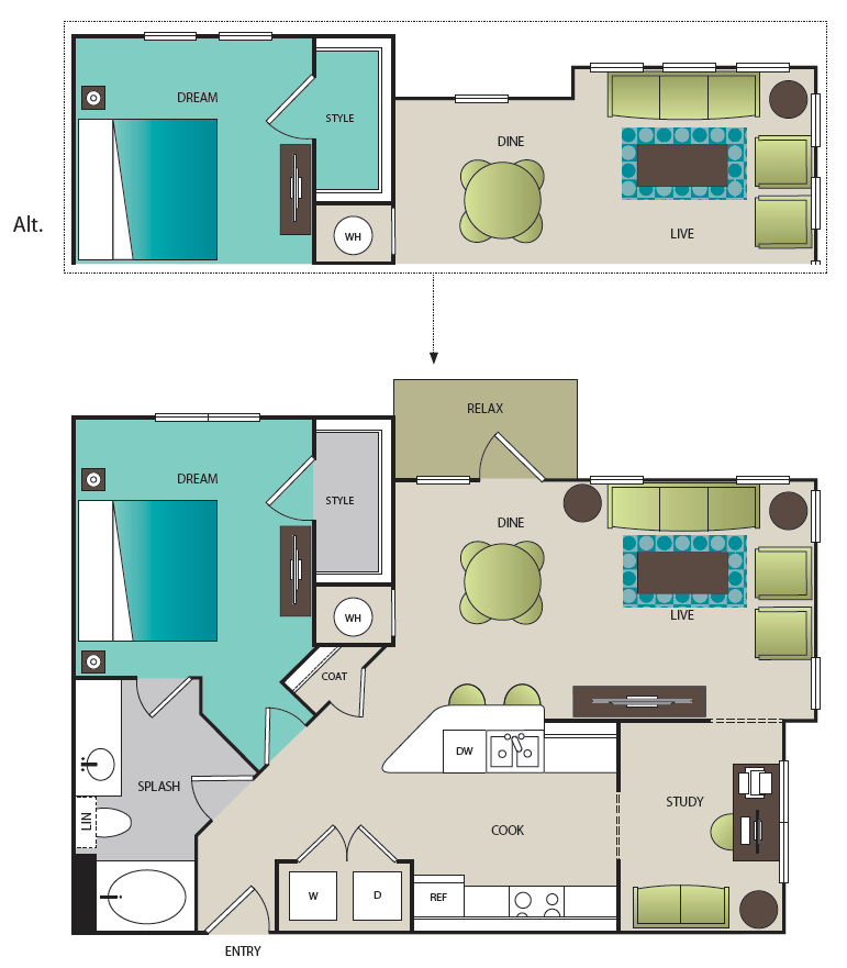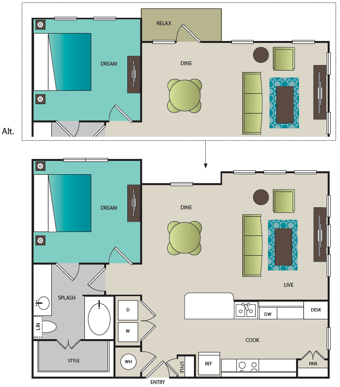 1 Dormitorio, 1 Baño, 788-796 pies²Disponible AhoraGalería del Modelo