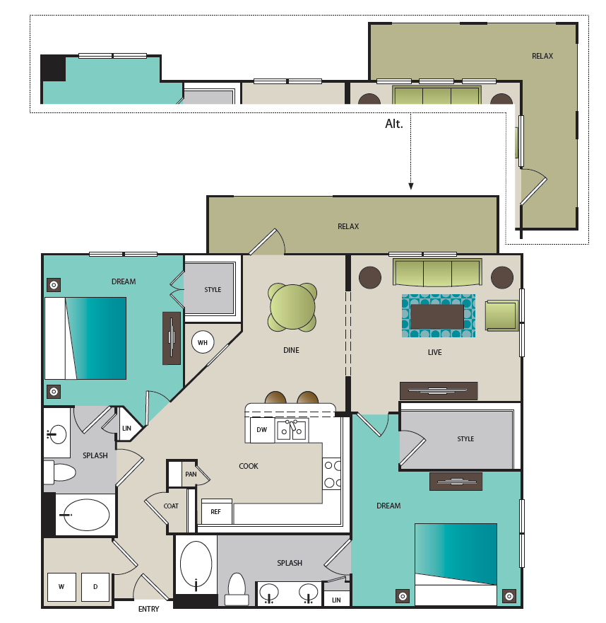 Modelo de apartamento: A3Desde $1,3551 Dormitorio, 1 Baño, 819 sq ftDisponible Ahora![]()