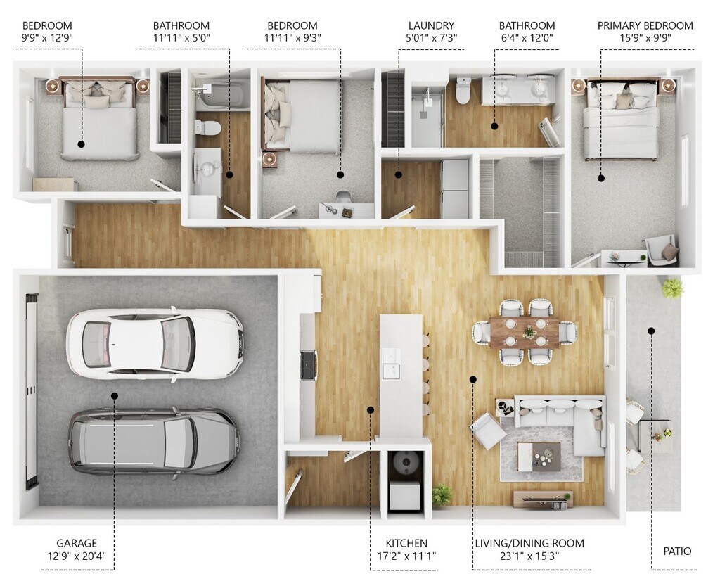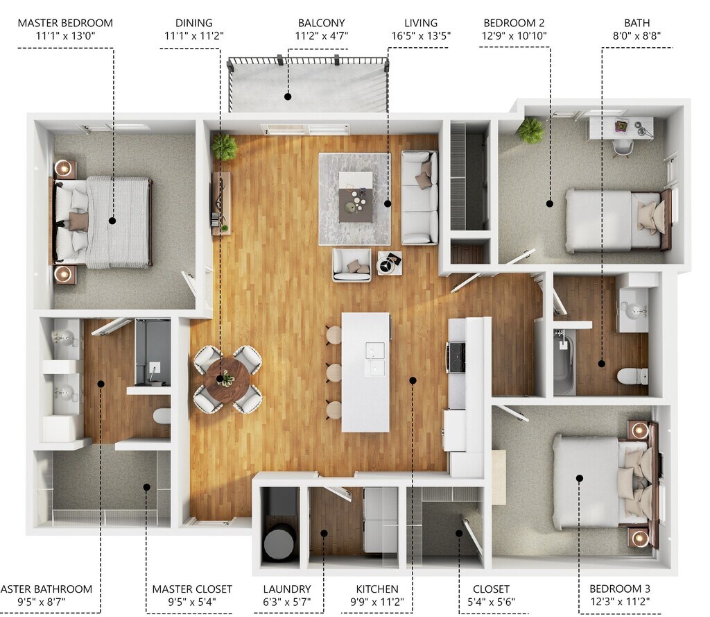 Modelo de apartamento: A1Desde $1,3751 Dormitorio, 1 Baño, 673 sq ftDisponible March 16, 2026![]()