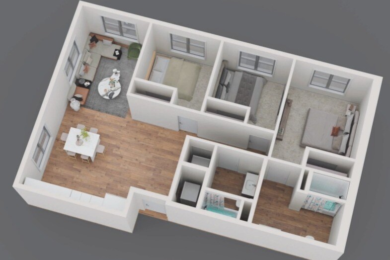 3 Dormitorios, 2 Baños, 1005 pies²Galería del Modelo