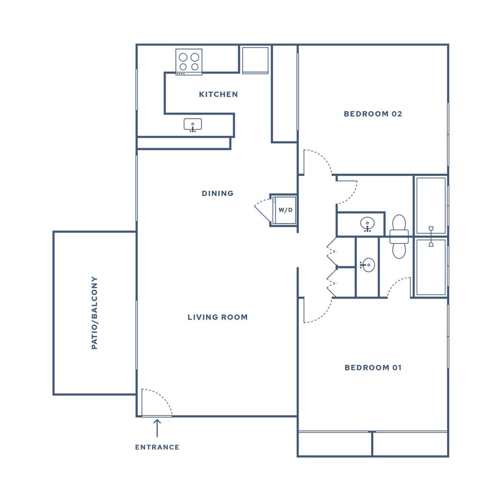 2 Dormitorios, 2 Baños, 991 pies²El más grandeEsta opción tiene las unidades más grandes para este modeloGalería del Modelo
