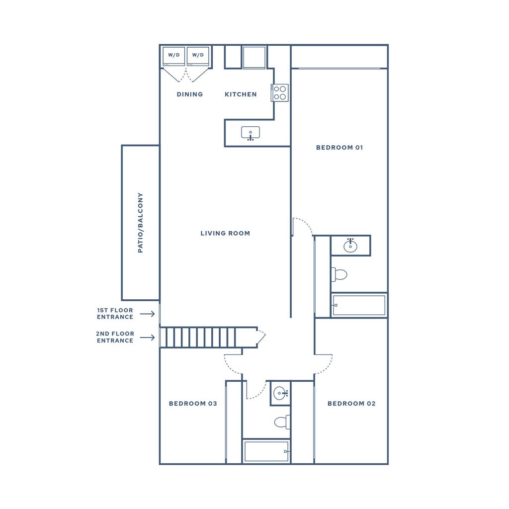3 Dormitorios, 2 Baños, 1288 pies²Disponible January 13, 2026Galería del Modelo