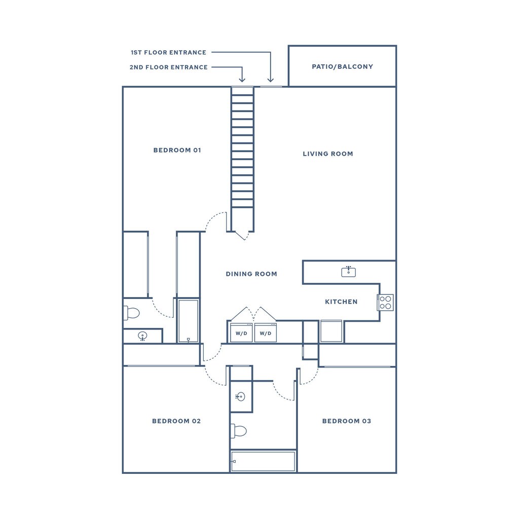 Modelo de apartamento: 3 bed, 2 Bath - C2 (Camino Real)Llame para Precios3 Dormitorios, 2 Baños, 1276 sq ftNo Disponible3 bed, 2 Bath - C2 (Camino Real) - Plano 1 3 Bed, 2 Bath - C5