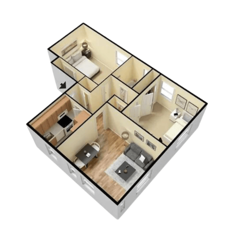 Modelo de apartamento: 2 Bedroom 1 BathroomDesde $1,3102 Dormitorios, 1 Baño, 900 sq ftDisponible Ahora![]()