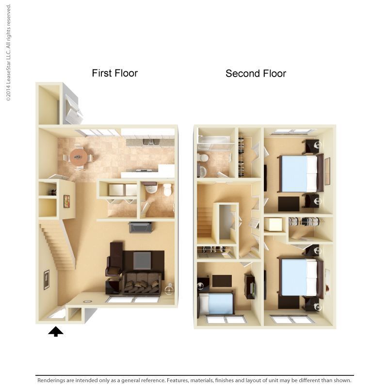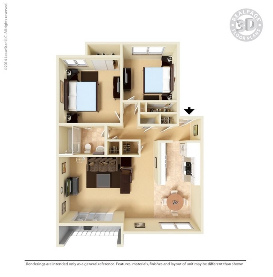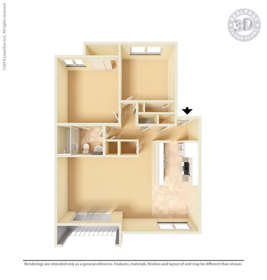 Large 2 Bed 1 Bath - Plano 3 Los planos de la planta son una interpretación artística. Todas las dimensiones son aproximadas. Los tamaños o el detalle del producto real y sus especificaciones pueden variar. No todas las características están disponibles en todos los hogares para rentar. Los precios y la disponibilidad están sujetos a cambios. El alquiler que se muestra es mensual. Se pueden aplicar ciertos cargos, por ejemplo, entrega de paquetes, recolección de basura, agua, servicios, etc. Depositos varian. Consulta a un representante para conocer detalles.