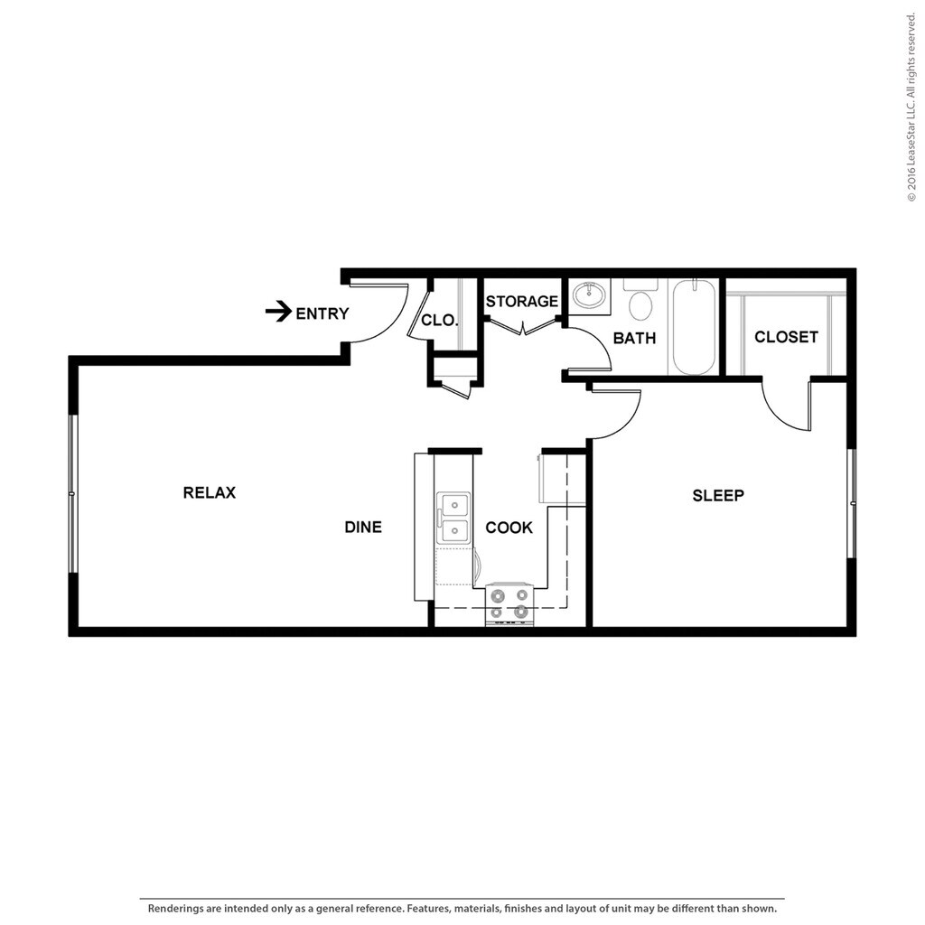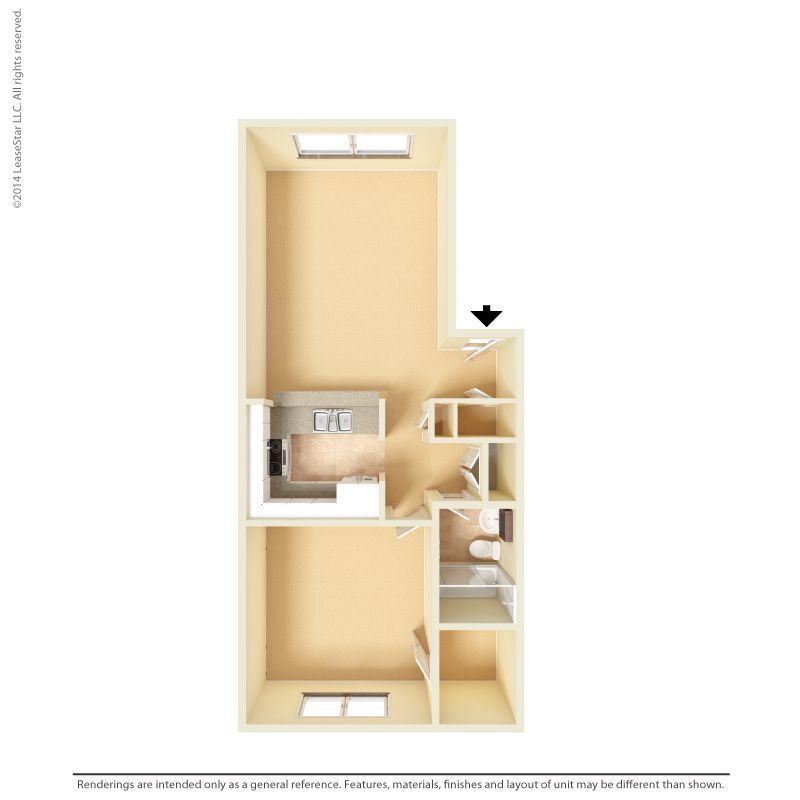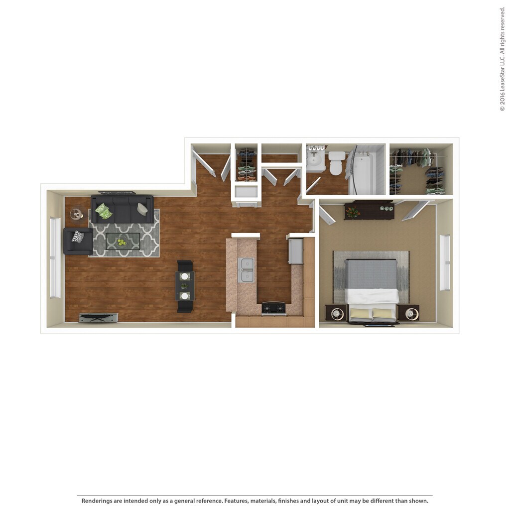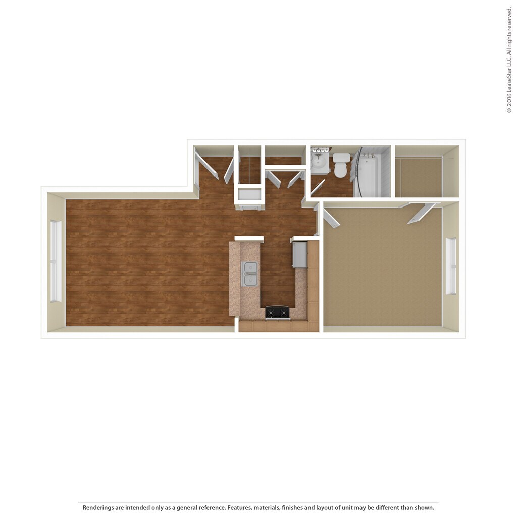Large 1 Bed 1 Bath - Plano 1 Los planos de la planta son una interpretación artística. Todas las dimensiones son aproximadas. Los tamaños o el detalle del producto real y sus especificaciones pueden variar. No todas las características están disponibles en todos los hogares para rentar. Los precios y la disponibilidad están sujetos a cambios. El alquiler que se muestra es mensual. Se pueden aplicar ciertos cargos, por ejemplo, entrega de paquetes, recolección de basura, agua, servicios, etc. Depositos varian. Consulta a un representante para conocer detalles.