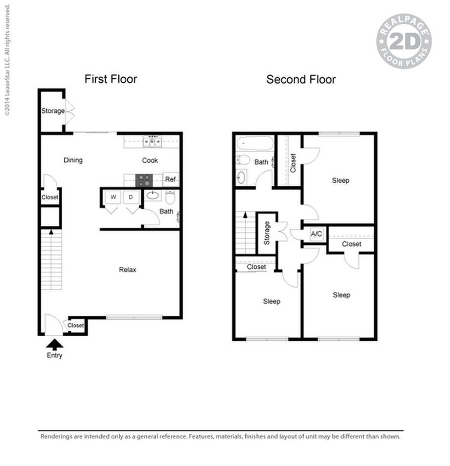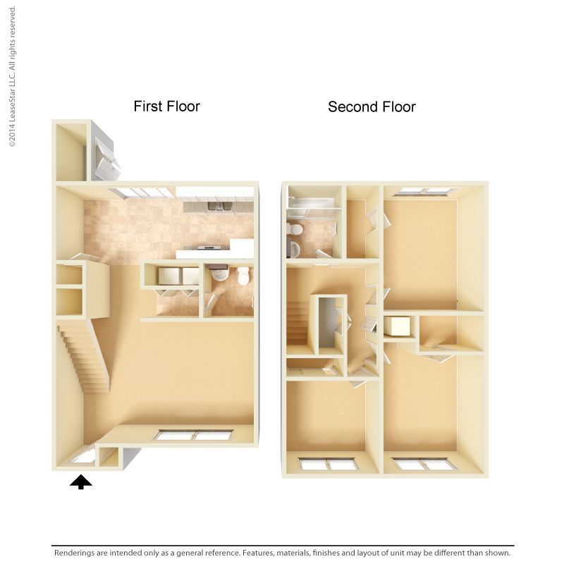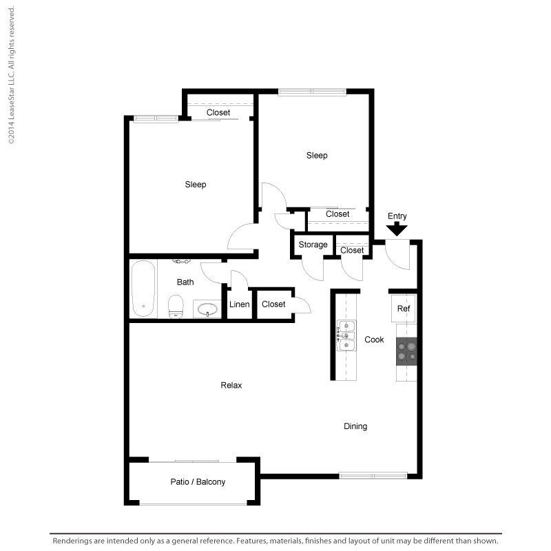 Large 2 Bed 0.75 Bath - Plano 2 Los planos de la planta son una interpretación artística. Todas las dimensiones son aproximadas. Los tamaños o el detalle del producto real y sus especificaciones pueden variar. No todas las características están disponibles en todos los hogares para rentar. Los precios y la disponibilidad están sujetos a cambios. El alquiler que se muestra es mensual. Se pueden aplicar ciertos cargos, por ejemplo, entrega de paquetes, recolección de basura, agua, servicios, etc. Depositos varian. Consulta a un representante para conocer detalles.