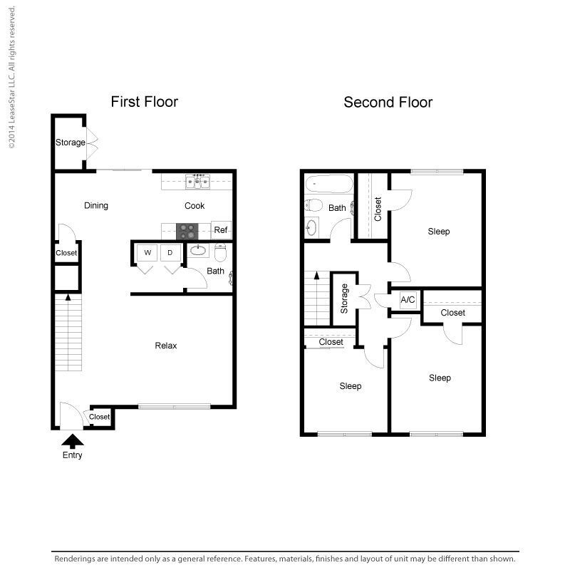 X Large 3 Bed 1.5 Bath - Plano 2 Los planos de la planta son una interpretación artística. Todas las dimensiones son aproximadas. Los tamaños o el detalle del producto real y sus especificaciones pueden variar. No todas las características están disponibles en todos los hogares para rentar. Los precios y la disponibilidad están sujetos a cambios. El alquiler que se muestra es mensual. Se pueden aplicar ciertos cargos, por ejemplo, entrega de paquetes, recolección de basura, agua, servicios, etc. Depositos varian. Consulta a un representante para conocer detalles.