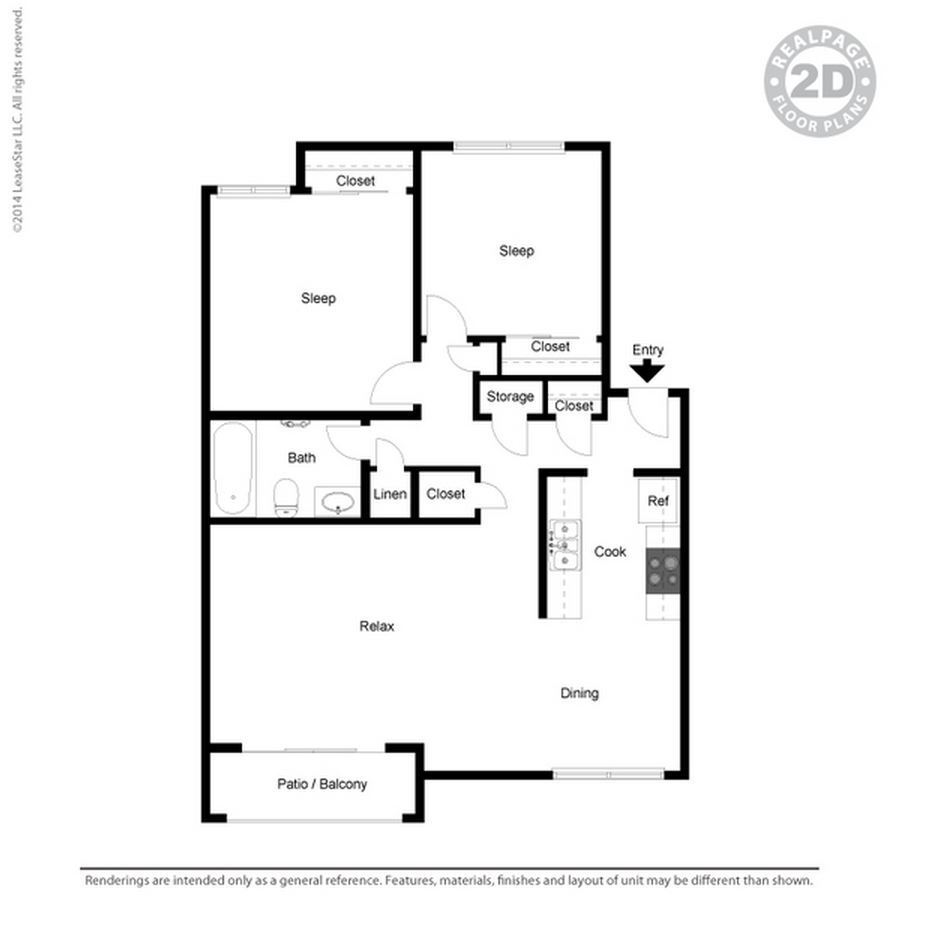 Large 2 Bed 1 Bath - Plano 2 Los planos de la planta son una interpretación artística. Todas las dimensiones son aproximadas. Los tamaños o el detalle del producto real y sus especificaciones pueden variar. No todas las características están disponibles en todos los hogares para rentar. Los precios y la disponibilidad están sujetos a cambios. El alquiler que se muestra es mensual. Se pueden aplicar ciertos cargos, por ejemplo, entrega de paquetes, recolección de basura, agua, servicios, etc. Depositos varian. Consulta a un representante para conocer detalles.