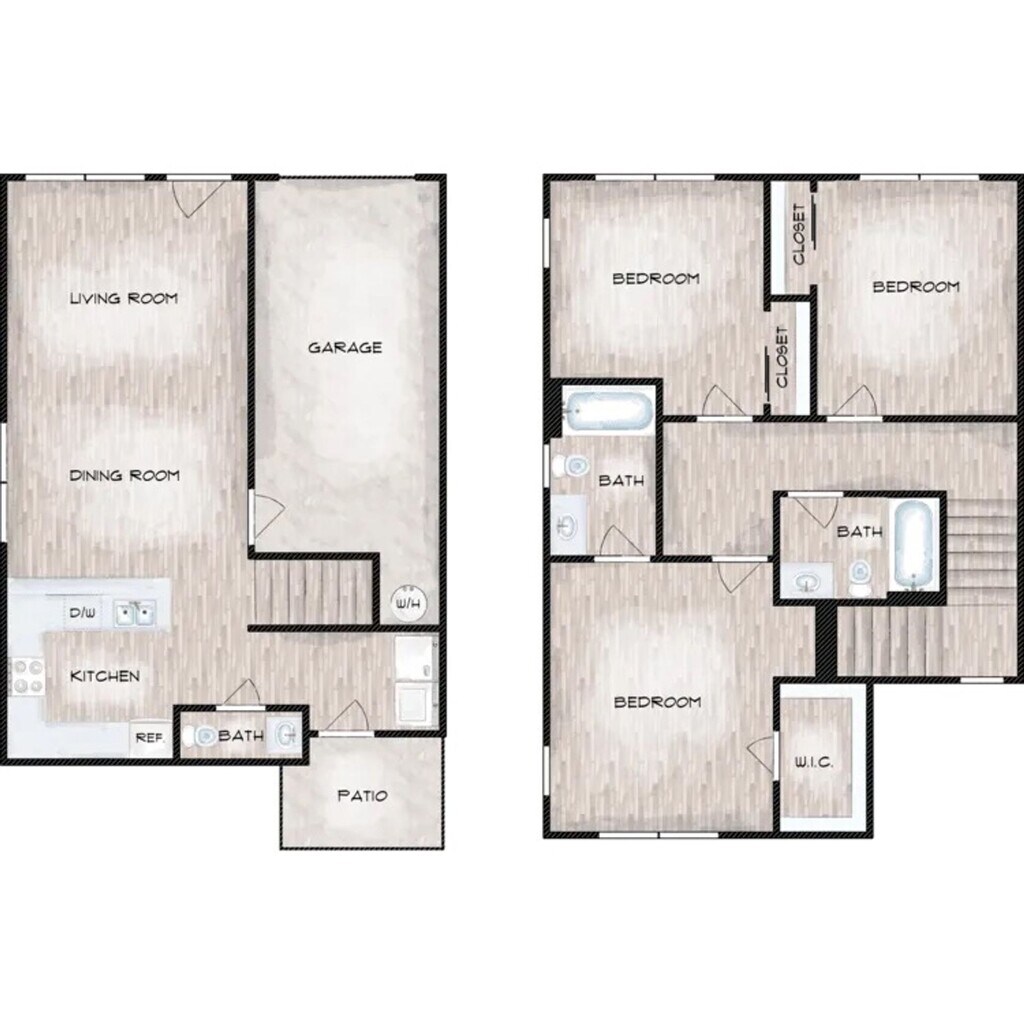 3 Dormitorios, 2.5 Baños, 1255 pies²Disponible AhoraGalería del Modelo