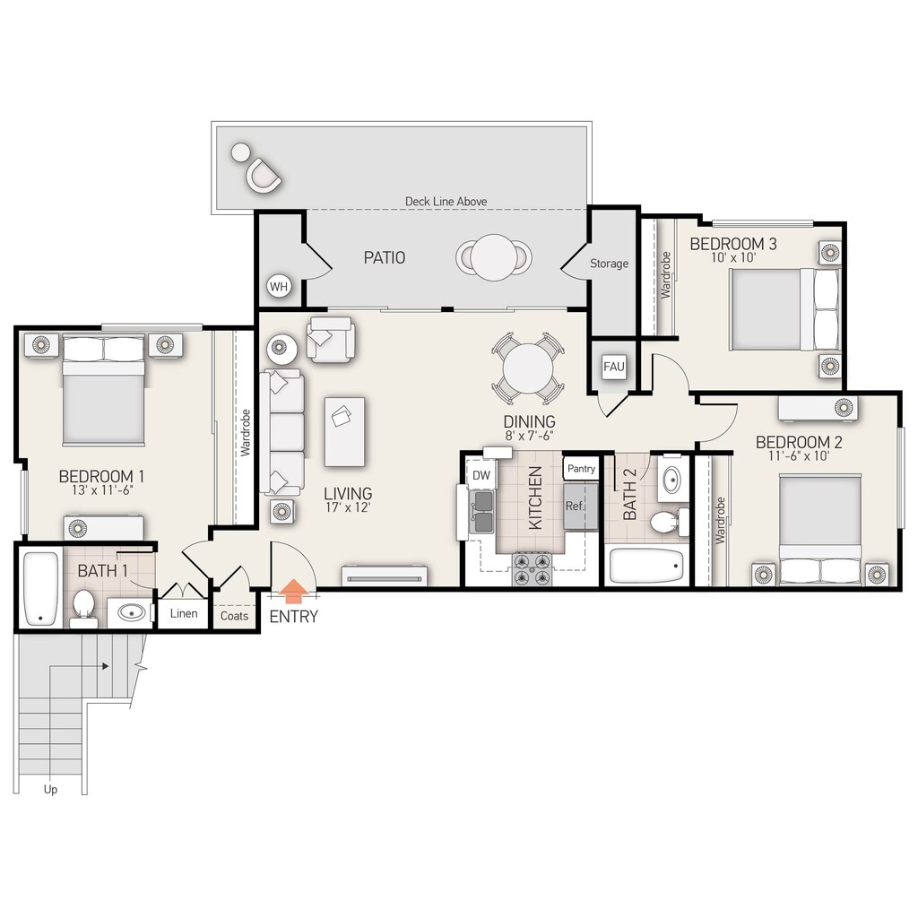 Plan D - Plano Unidad de apartamento: 057Modelo de apartamento: Plan D$2,5601 Dormitorio, 1 Baño, 776 sq ftDisponible April 15, 20262 Dormitorios