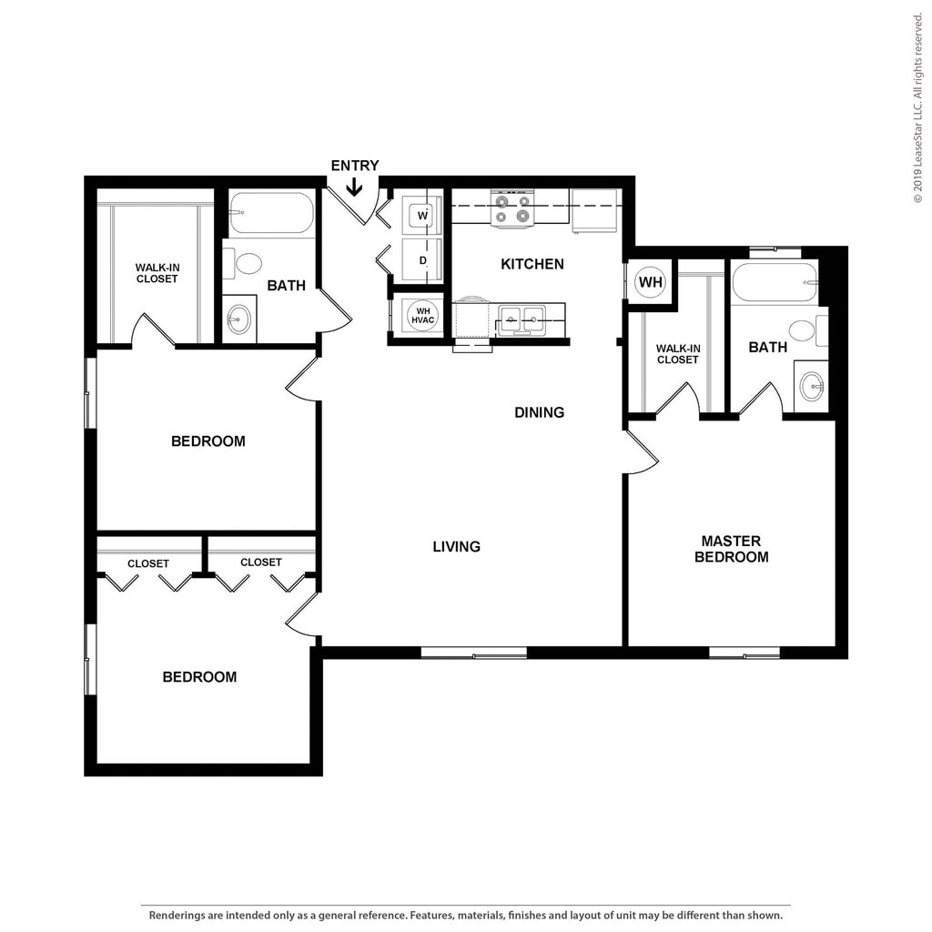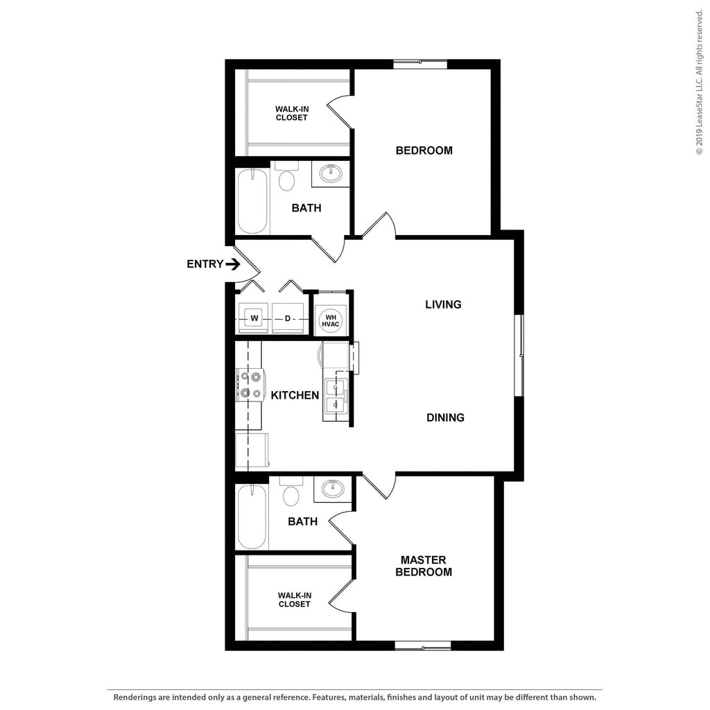 Modelo de apartamento: Elm2 Dormitorios, 2 Baños, 958 sq ftNo Disponible![]()