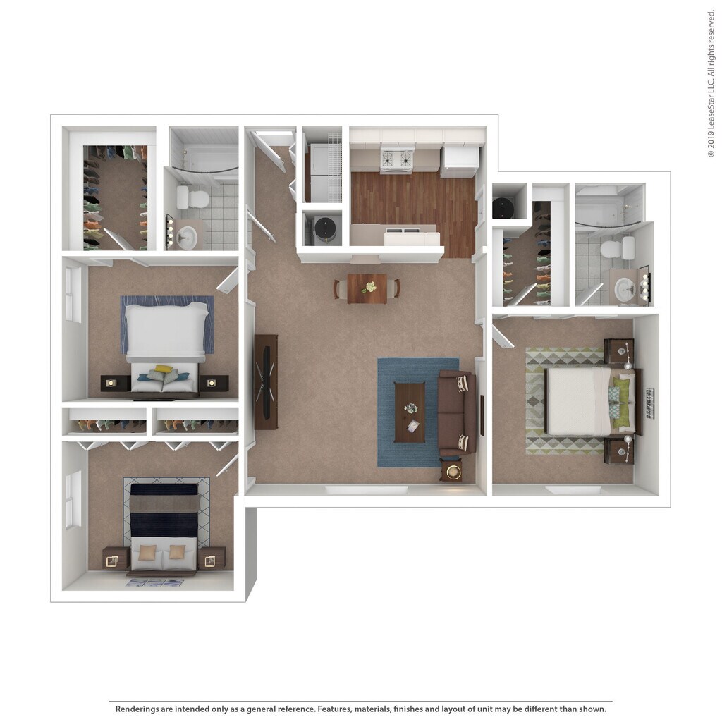 Modelo de apartamento: Pine3 Dormitorios, 2 Baños, 1228 sq ftNo DisponiblePlanosFotos![]()