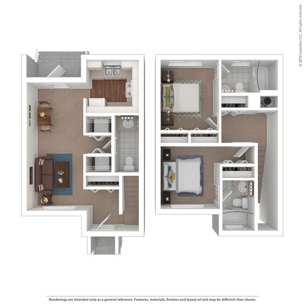 Modelo de apartamento: Palm2 Dormitorios, 2.5 Baños, 1158 sq ftNo Disponible![]()