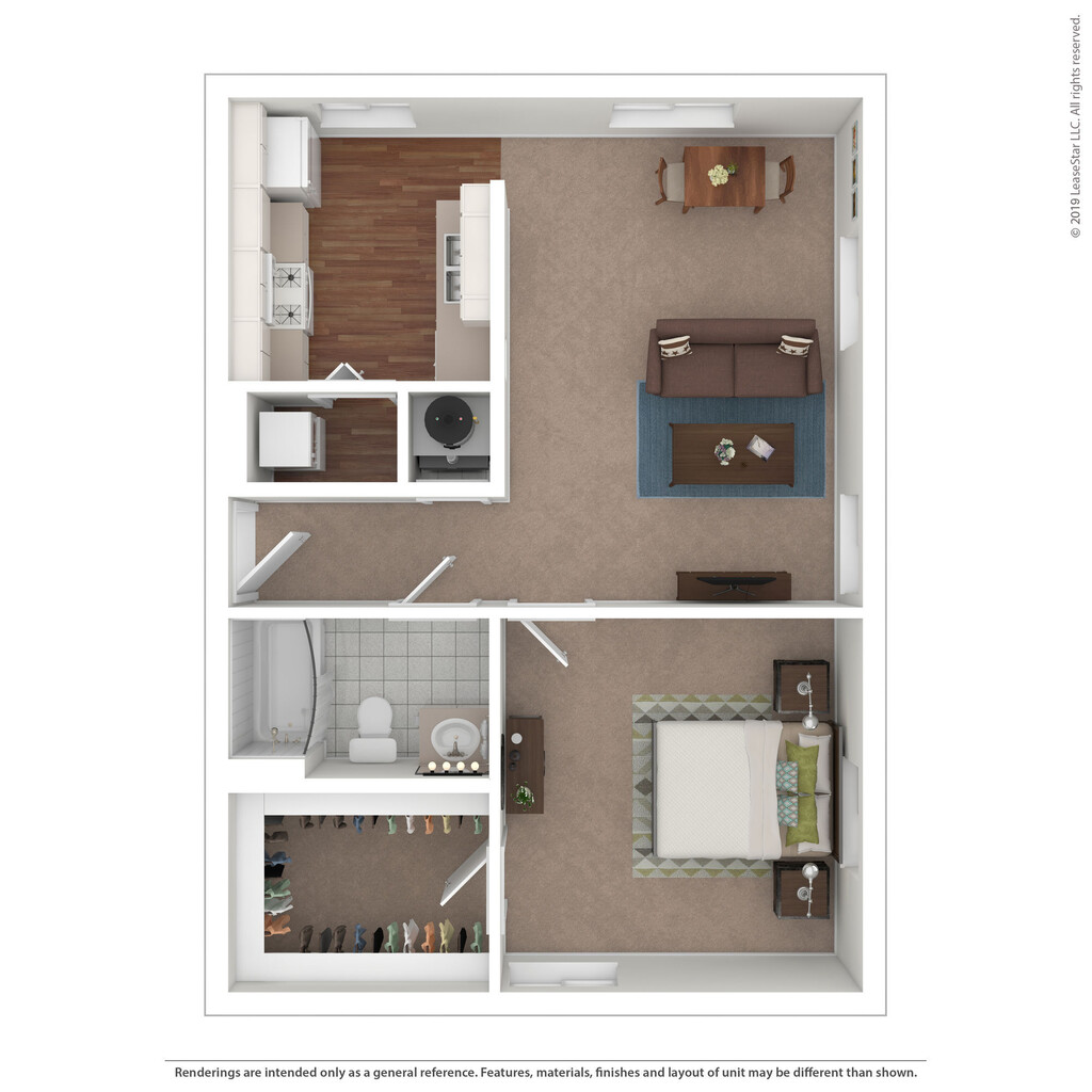 1 Dormitorio, 1 Baño, 710 pies²Galería del Modelo