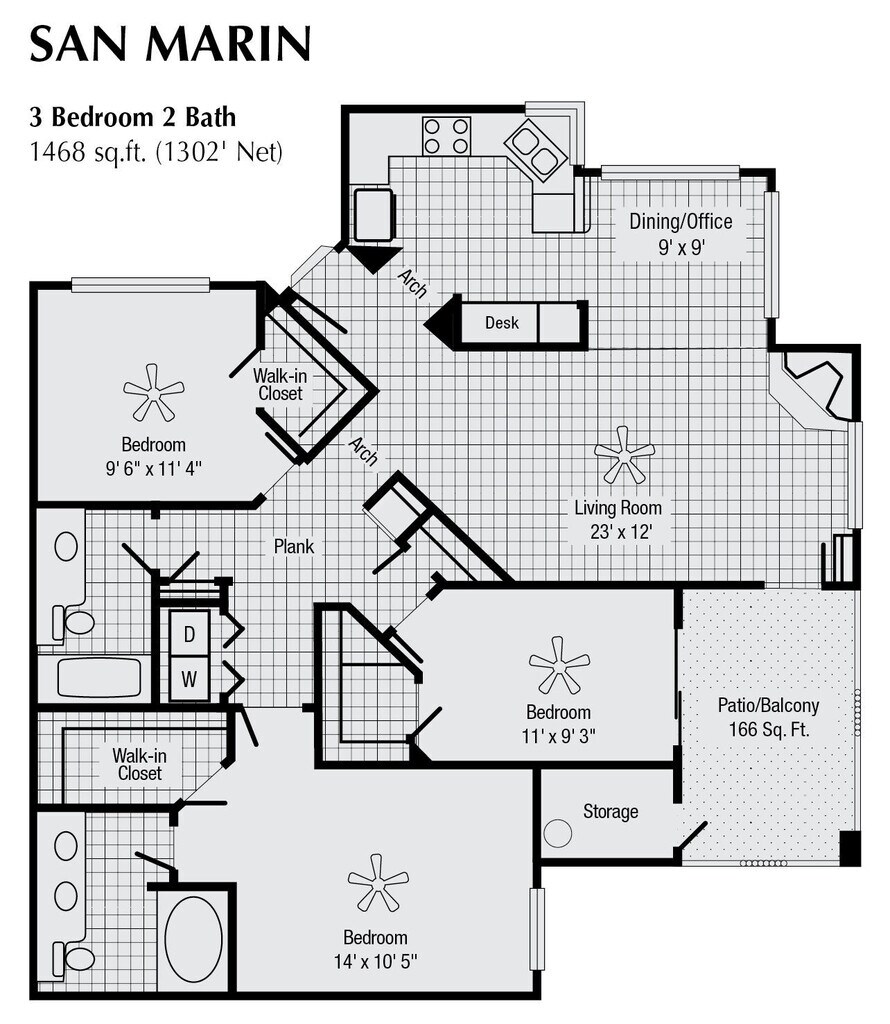 Modelo de apartamento: 1 Bed 1 Bath 1023 SqFt (916 Net)$1,7221 Dormitorio, 1 Baño, 916 sq ftDisponible Ahora![]()
