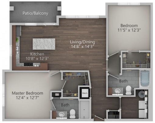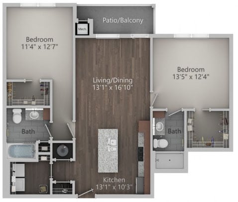 Modelo de apartamento: AcadianDesde $1,3991 Dormitorio, 1 Baño, 664 sq ftNo Disponible![]()