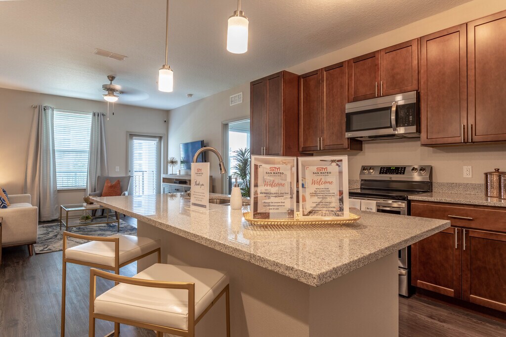 San Mateo Crossing, ubicado en la vibrante Kissimmee, Florida, ofrece nuevos apartamentos de una, dos y tres habitaciones con todo lo que necesitas para vivir una vida de lujo moderno. Nuestra propiedad estilo centro turístico cuenta con apartamentos de media altura y lofts con acabados elegantes, rodeados de una comunidad cálida y acogedora. Los residentes disfrutarán de una variedad de comodidades comunitarias que incluyen acceso a una piscina con entrada cero, gimnasio de última generación y estudios de barra y ciclismo con gimnasio a pedido y amplios espacios de entretenimiento interiores y exteriores.