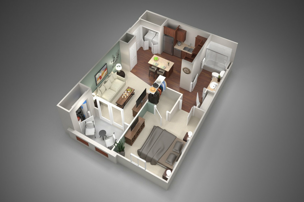 1 Dormitorio, 1 Baño, 1060 pies²El más grandeEsta opción tiene las unidades más grandes para este modeloGalería del Modelo
