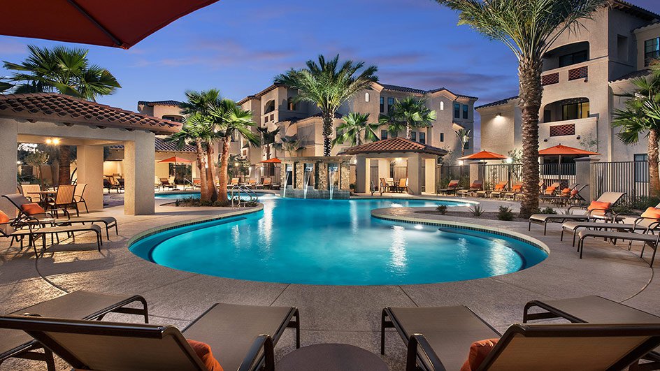 Vive cada día como el huésped consentido de un complejo turístico de lujo. Tu dirección será la primera en su tipo, un alquiler que es parte de un complejo turístico verdadero ubicado en el predio de un campo de golf de primer nivel nacionalmente aclamado y de un spa. Como residentes de este complejo de apartamentos tipo boutique ubicado dentro de The Arizona Grand Resort and Spa, tienes acceso a una increíble variedad de servicios, entre ellos el acceso gratuito al gimnasio Arizona Grand Athletic Club y descuentos en green fees, salón de belleza y servicios de spa, y en los restaurantes del centro turístico. Es la ubicación perfecta para tu estilo de vida activo. Ubicado en las laderas de las montañas de South Mountain Park, tu nuevo hogar está ubicado en un paraíso para caminantes con un desafiante campo de golf de 18 hoyos, una piscina tipo laguna con cabañas junto a la piscina, un gimnasio las 24 horas, todos los días, y un salón social, todos disponibles para ti. Elige entre apartamentos de una, dos y tres habitaciones, y disfruta del tipo de características de calidad que esperas ver en un hogar a medida, una cocina abierta con una isla, gabinetes de madera personalizados, electrodomésticos de acero inoxidable y encimeras de granito en la cocina y el baño, además de pisos de tablones de madera envejecida, accesorios de bronce aceitado, iluminación colgante y acceso directo al garaje.